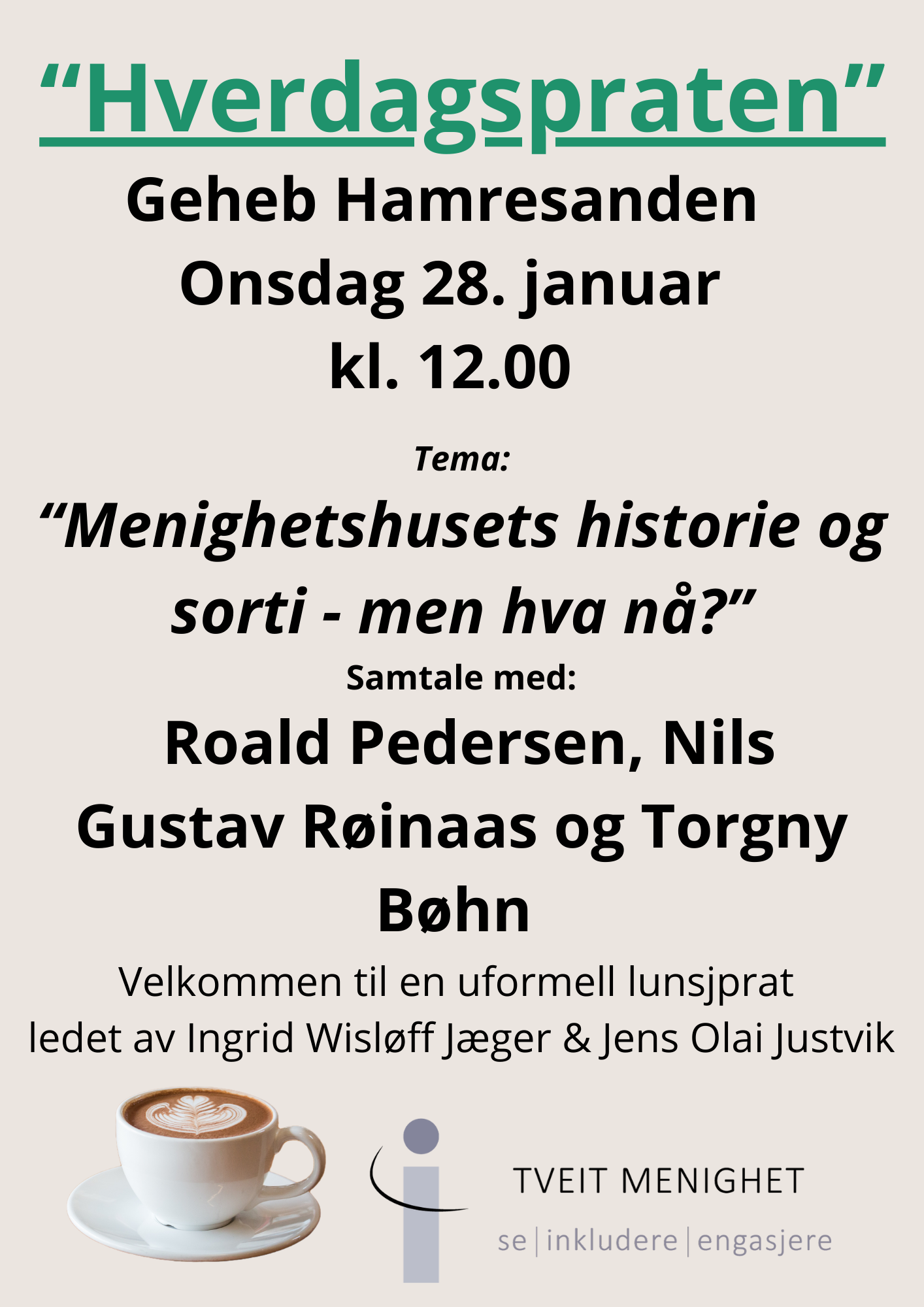 Velkommen til ny "Hverdagspraten" på Geheb Hamresanden ONSDAG 28. januar klokken 12.00.