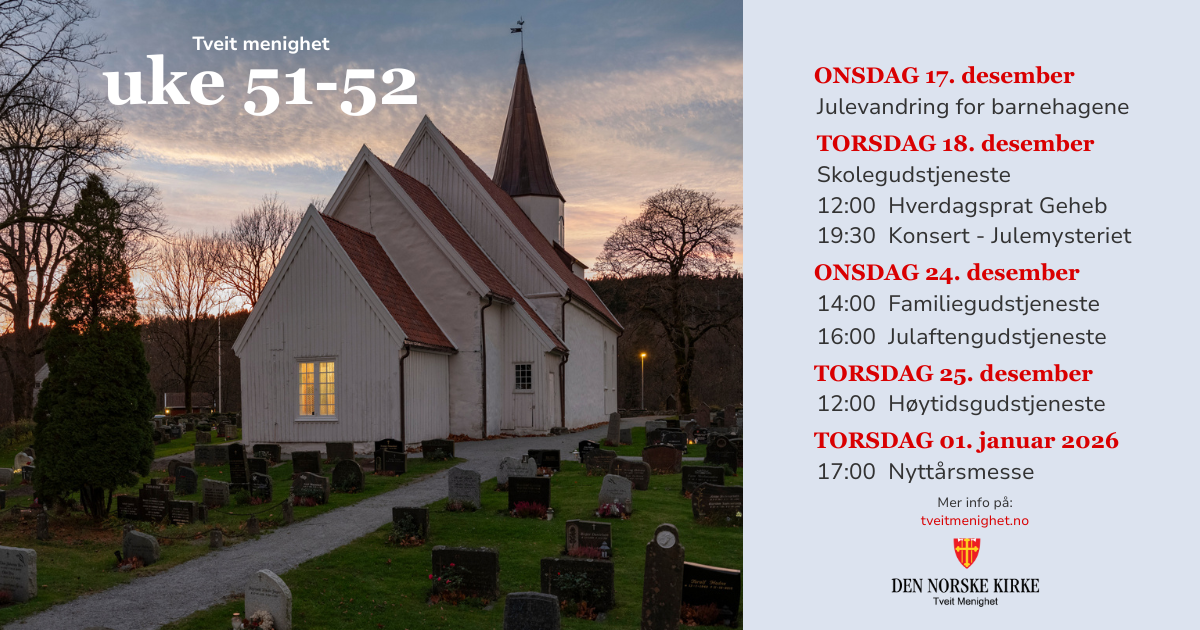 Visste du at Tveit kirke er aktive både på FB, IG, hjemmeside og mail?!